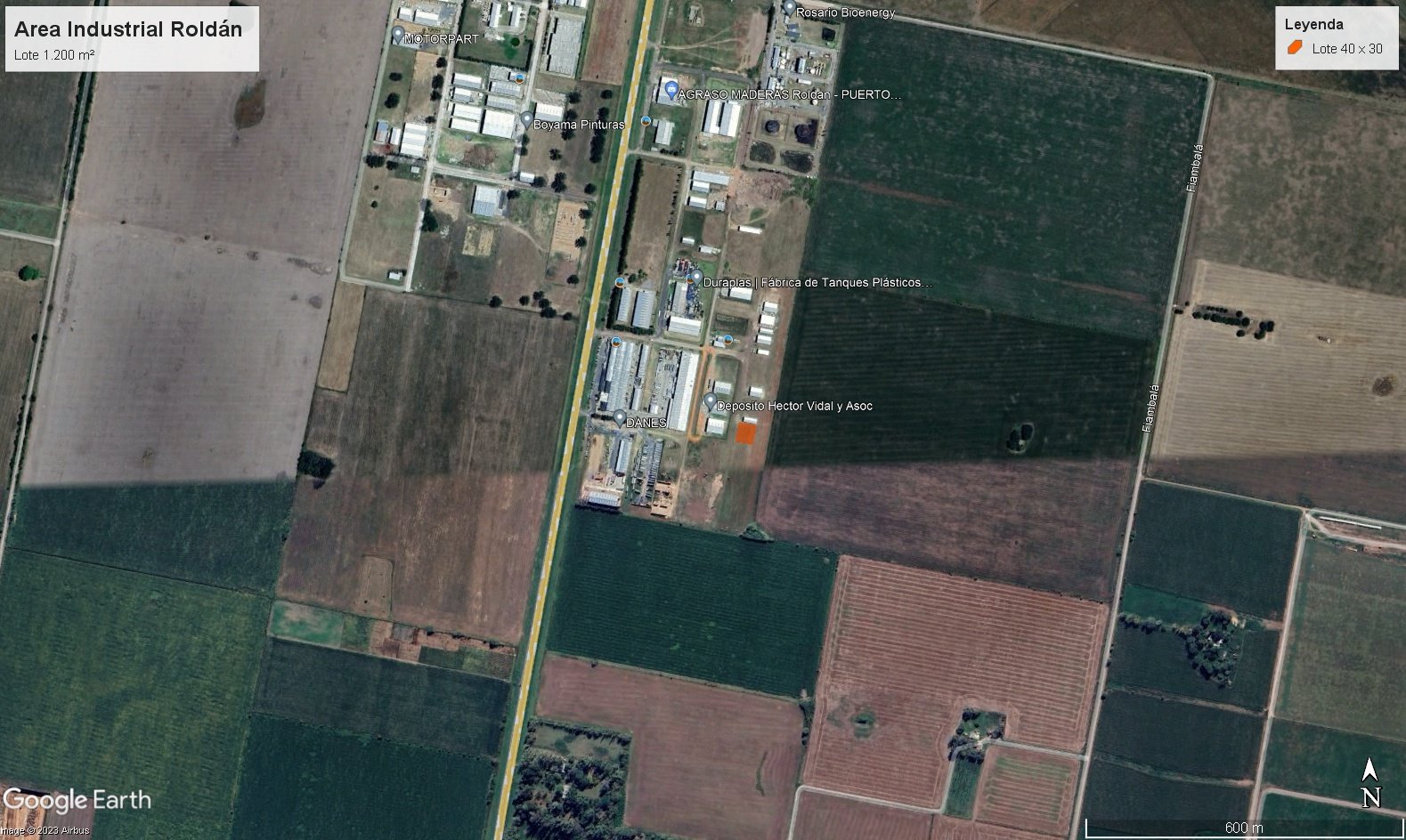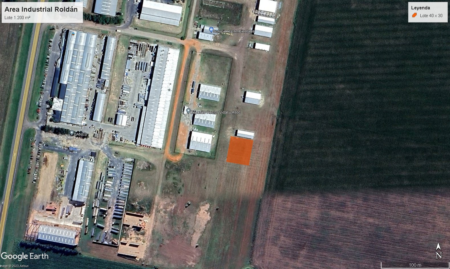 Lote de 40 x 30 Ubicado en la manzana B20 de la Zona Industrial de Roldán sobre RN A012 km 47,5 “a 7km de la Autopista Rosario – Córdoba y a 6 km de la Ruta Nacional N°34”. La ubicación y disposición del mismo hacen que sea propicio y adecuado para el desarrollo de proyectos logísticos y/o industriales A metros de Duraplas S.R.L. y Danés S.R.L Servicios: Acceso por RN A012. Alambrado y forestación.